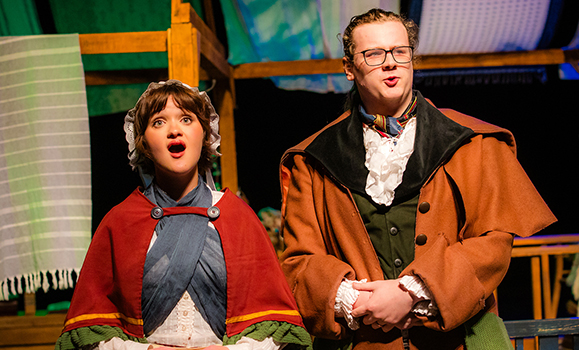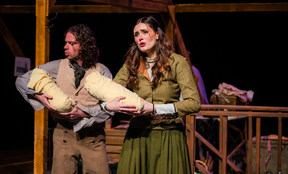 Stephen Deturbide, left, as John Brooke with Raphaelia Bokolas as Meg.