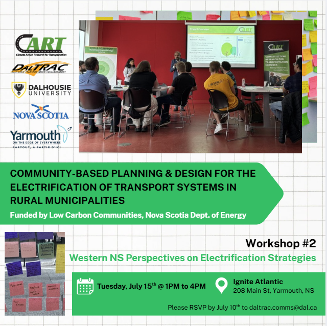 The first in-person workshop was held at the Halifax Central Library and brought together stakeholders from rural municipalities, transit organizations, non-profits, and provincial agencies. The session began with a presentation on the state of rural transport electrification in Nova Scotia, including findings from the NovaTRAC survey. Key issues identified included affordability, infrastructure gaps, and the need for community-based solutions.